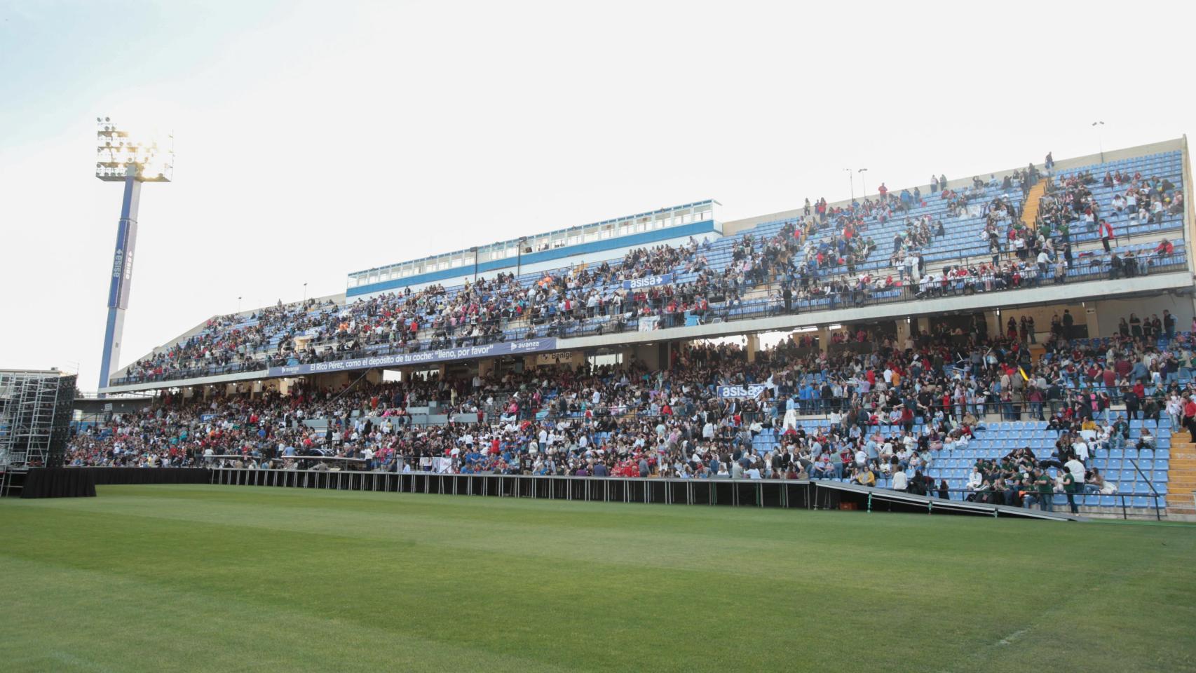 Las candidatas han ido saliendo por la bocana de vestuarios escalonadamente. Una vez frente a las grada de tribuna del Rico Pérez, han saludado durante unos segundos a los 6.000 asistentes.