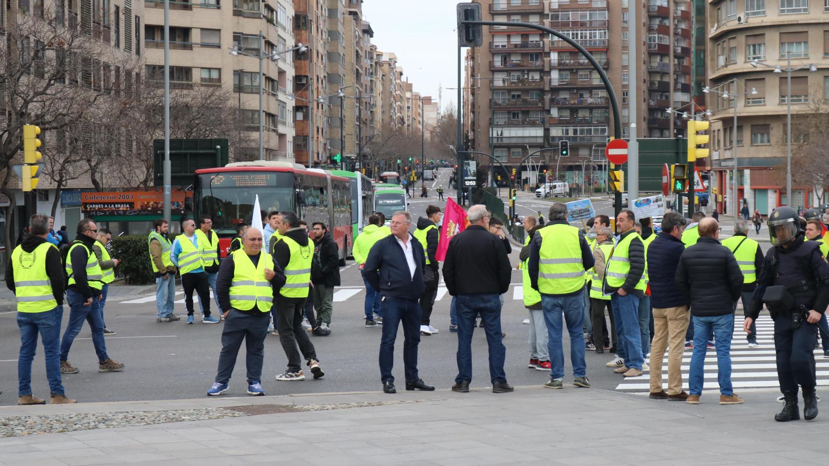 La manifestación estaba prevista a las 11.00, cuando se han dado cita varios centenares de agricultores y tres tractores. Una hora después, tras leer el manifiesto y viendo que la Policía no les iba a permitir el acceso, optaron por improvisar y trasladarse a la otra puerta, ubicada en la avenida de Madrid. Como tampoco hubo suerte, optaron por pasar a la acción y cortar el tráfico de esa calle, a la altura de la rotonda de la plaza de la Ciudadanía, provocando que muchos coches y autobuses tuvieran que dar la vuelta para, en dirección contraria, buscar una salida.