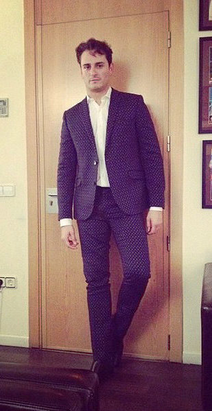 El estilismo de El Intérprete, nombre de su espectáculo musical (no lo dejéis escapar si recala en un teatro cercano), fue confeccionado en la oficina de prensa de García Madrid, una de las marcas masculinas preferidas por los famosos, fundada en 2006 y que une la tradición de la sastrería europea con un toque actual. Pese a tener tres piezas originalmente, el actor prescindió del chaleco para restar dramatismo y lo combinó con una camisa blanca. Para saberlo todo sobre ese traje azul marino estampado, divertido y elegante, de la colección otoño-invierno 2014 hablamos con su diseñador, Manuel García: