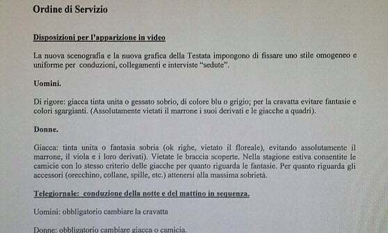 Según fuentes de la televisión pública italiana, estas fuertes medidas de imagen se han implementado para intentar que sus presentadores no caigan en el mal gusto o en prendas demasiado sensuales que le resten seriedad a la información.