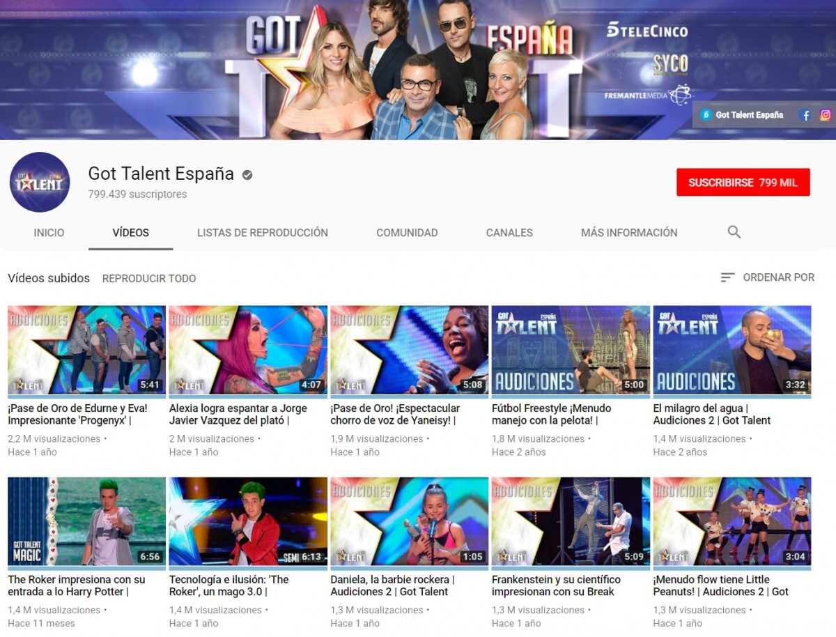 Los contenidos del programa son subidos a su canal oficial en YouTube, 'Spain’s Got Talent'.