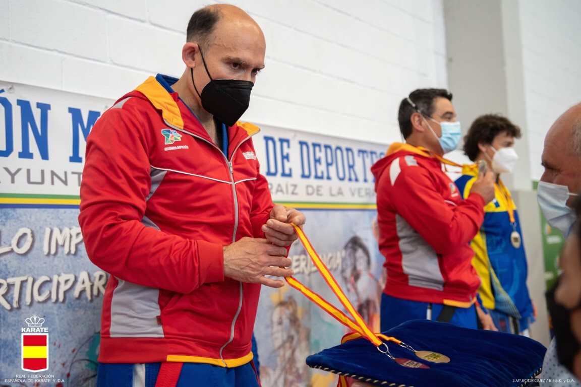 Juan Antonio Velasco, del Artes Marciales, no pudo revalidar su título de campeón nacional, pero logró el segundo puesto en la categoría de Goshin Máster masculino >45 años, cayendo por un ajustado 3-2 en la final. También subió al segundo cajón del podio David Toquero, del gimnasio Almería, quien formó parte del equipo de Kumite Veteranos mixto que se proclamó subcampeón de España. Especialmente meritoria fue la medalla de bronce conquistada por el medinense Óscar Botrán, del club Budokan, en la que posiblemente era la categoría más difícil del torneo por el nivel y el número de participantes, la de Kata individual masculino 40-49 años. También puede considerarse un gran éxito el tercer puesto de Mª Ángeles López en Kata individual femenino 40-49 años. La karateka del Fitness Park ha repetido su posición de 2020 y es una habitual en los podios de su categoría. Dos luchadores del Artes Marciales completan la nómina de medallistas, la joven Sofía Guerrero, bronce en Goshin Cadete-Júnior femenino, y Juan Carlos Santos, también bronce en la categoría de Goshin Máster masculino 31-45 años. A un paso de subir al podio se quedaron varios miembros de nuestra selección regional, entre ellos Pilar Gómez (Budokan), quinta en Kata individual femenino 50-59 años, o Luis Pérez (Budokan) y el propio David Toquero (Almería) como componentes del equipo masculino de Kumite Veteranos, también quinto clasificado. La heroína del campeonato fue la abulense Belén Martín, quien participó en las tres modalidades de competición (Kata, Kumite y Goshin) y se colgó nada más y nada menos que siete medallas: oro en Kata individual; plata en Kumite individual, equipos femenino y mixto, así como en Goshin sénior femenino; y bronce en Kata dúo y Goshin dúo.