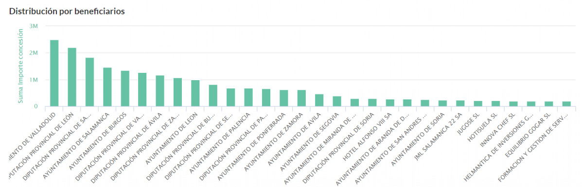 Posteriormente este dinero ha llegado a ayuntamiento, diputaciones y empresas que han sido los encargados de la distribución por beneficiarios. El que más dinero ha recibido es el Ayuntamiento de Valladolid con 2,5 millones de euros, la Diputación de León con 2,2 millones, la de Salamanca con 1,8, mientras que el consistorio salmantino ha recibido 1,46. El Ayuntamiento de Burgos ha recibido 1,3 millones, la Diputación de Valladolid, 1,2 y la de Ávila, 1,1 millones de euros.