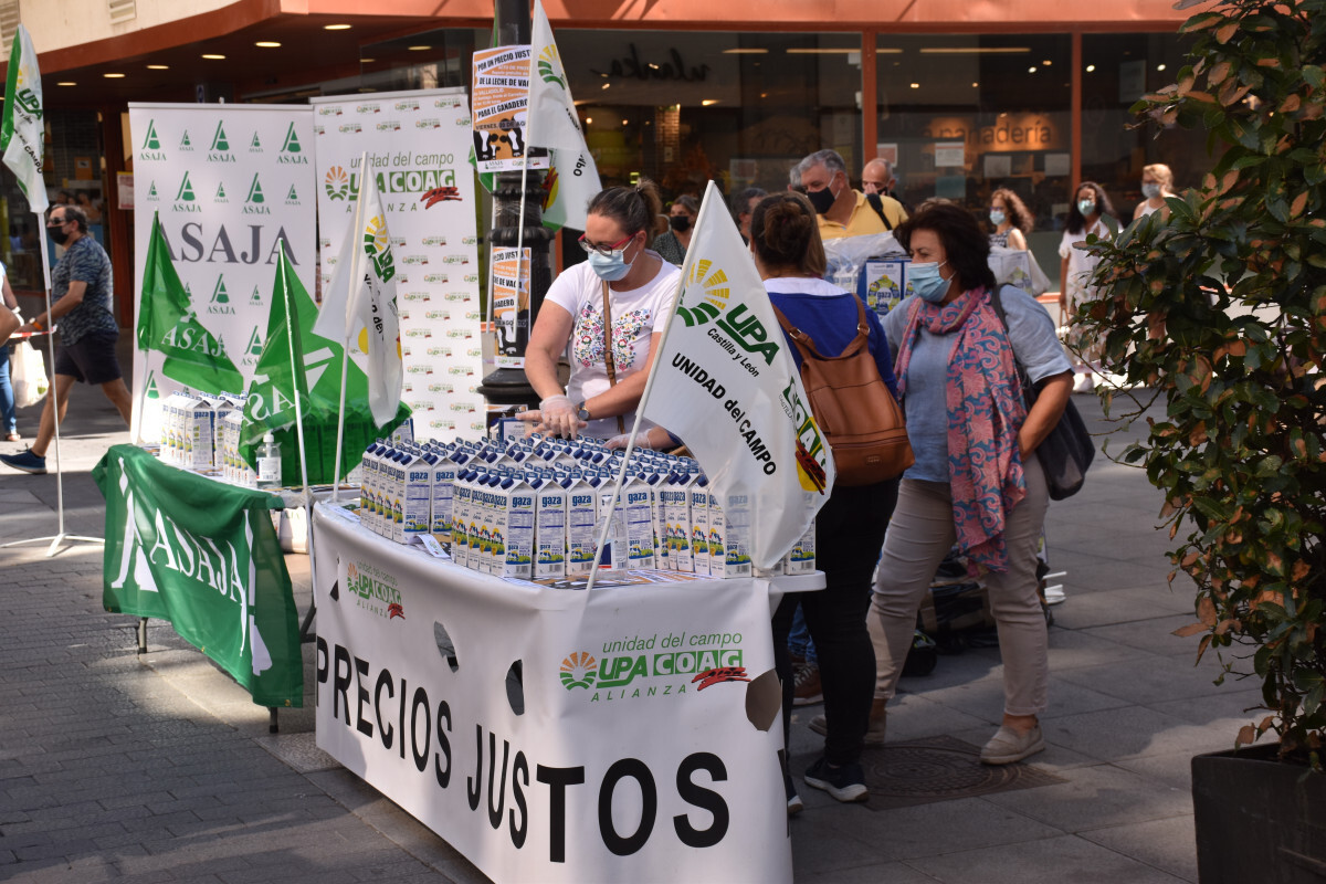 Más de 1.500 litros de leche se han repartido esta mañana, en Valladolid, como denuncia de los precios de venta de la leche