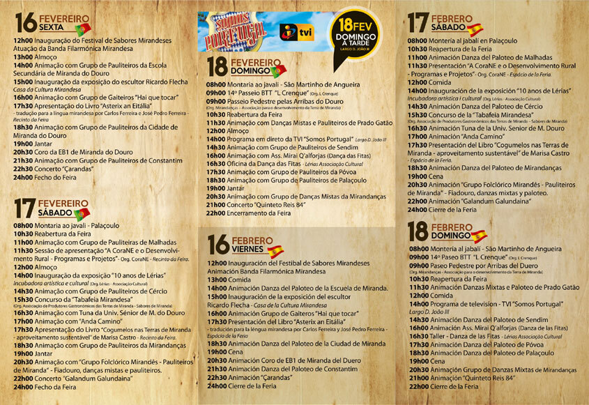 Muestra fue la que la Câmara Municipal de Miranda do Douro, representada por su presidente, Artur Nunes, así como por el presidente de la Asamblea Muncipal, Carlos Ferreira, que hizo de 'guía', y con la organización conjunta con Turismo Porto e Norte de Portugal, hizo con 34 periodistas llegados de la mitad norte de Portugal y España. Si Artur Nunes explicó la historia, actualidad y cultura de Miranda do Douro, Ferreira hizo lo propio con el 'mirandés' -ambos ataviados con la típica Capa d'Honras Mirandesa.