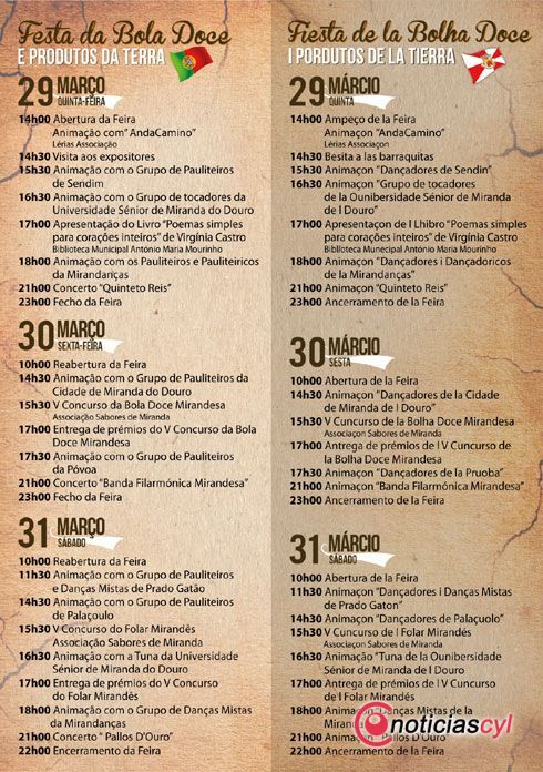 El Bollo Dulce Mirandés es un dulce propio y uno de los iconos gastronómicos de Miranda do Douro, tradicionalmente asociado a la Semana Santa y la Pascua, y también motivo para la realización de la Feria que transcurrirá del 29 al 31 de marzo, en el Largo del Castillo, en Miranda do Douro. Más allá de este dulce tradicional, tendrá de igual modo presencia destacada el pan, los embutidos, licores y vinos, así como otros productos de las Tierras de Miranda.