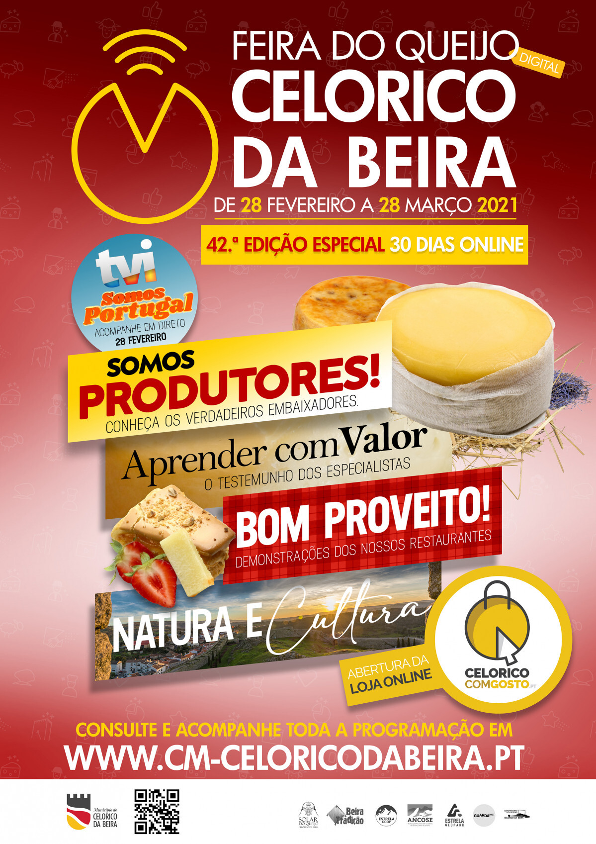 La 42ª edición de la Feria del Queso de Celorico da Beira tendrá lugar el 28 de febrero al 28 de marzo de 2021 pero, en esta ocasión, tendrá un formato enteramente digital. En el actual contexto de pandemia, el municipio de Celorico da Beira lleva la Feria del Queso hasta los domiciliois, con todo lo que ello comporta: cultura, tradición, patrimonio sabores y saberes de la Sierra da Estrela.