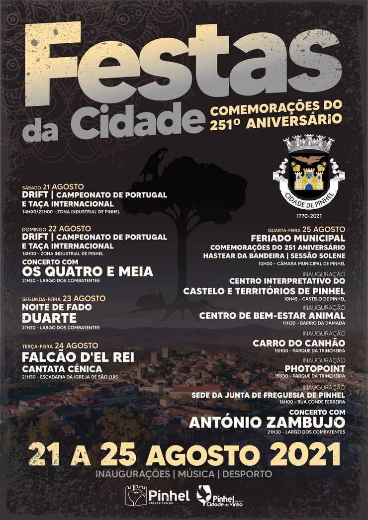 Este aniversario será conmemorado con actividades de música, deportes y con diversas inauguraciones. Los días 21 y 22 de agosto subirá la adrenalina en la Ciudad Falcão, con el Campeonato de Portugal y la Copa Internacional de Drift, que se celebrará en la Zona Industrial, finalizando el fin de semana en el Largo de los Combatientes con un concierto con 'Quatro e Meia'.
