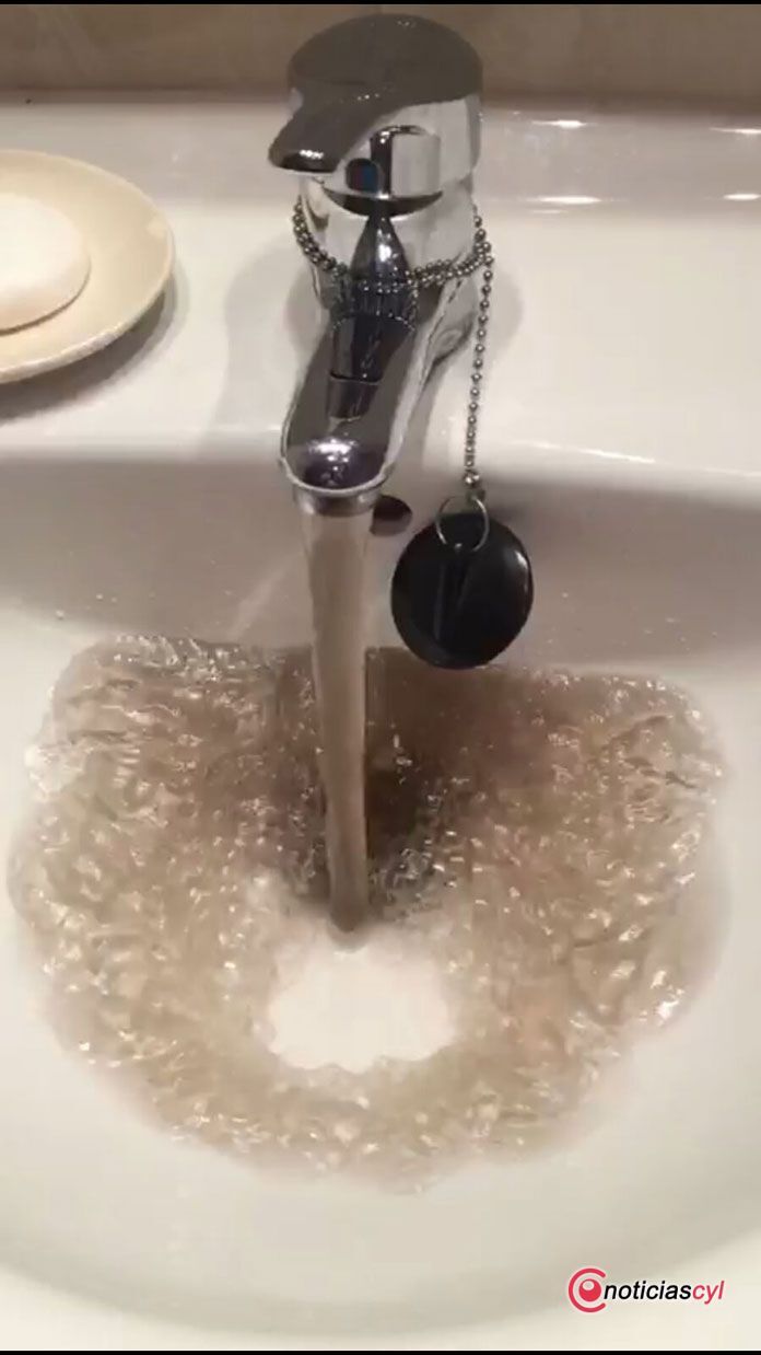 Tal y como se aprecia en las fotografías captadas por un vecino de Puebla de Sanabria, éste es el aspecto que hoy presenta el agua del grifo. Por eso la Diputación de Zamora ha trasladado dos camiones cisternas con 19.000 litros de agua aptas para consumo humano, para facilitar el suministro de agua potable a la población mientras el río Tera recobra su natural pureza.