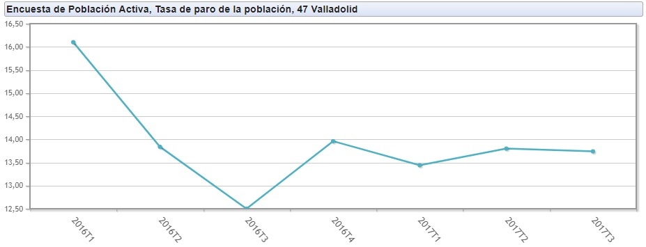 En el primer trimestre de 2016 la cifra de parados en la capital del Pisuerga se situaba en el 16,1% llegando a bajar hasta el 12,5% en el tercer trimestre de ese mismo año. En 2017 estas cifras volvieron a crecer llegando hasta, según datos de la última EPA, el 13,74%.