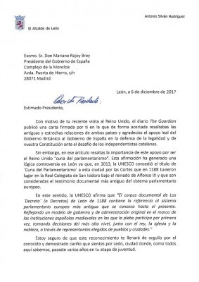 Ante la indignación que han levantado estas declaraciones en la ciudad de León, declarada 'Cuna del Parlamentarismo' por la Unesco en el año 2013, el alcalde, Antonio Silván, se ha dirigido al presidente para trasladarle "el documento acreditativo de este hecho histórico, como son los Decreta de Alfonso IX de 1188" y, de paso, invitarle a visitar "el lugar donde se celebraron las primeras cortes parlamentarias del mundo".