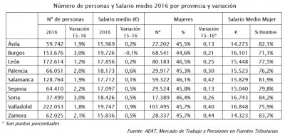 En todas las provincias de Castilla y León ha habido crecimiento, en Salamanca sólo el 0,1%, teniendo en cuenta que ya en 2015 fue la que tuvo el menor incremento. La combinación de variación del número de personas asalariadas y del salario medio hace que la variación de la masa salarial haya sido positiva, en Salamanca de nuevo entre las peores cifras, el 2,1%, sólo por delante de León.
