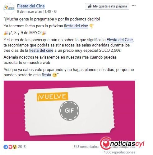 Yelmo o Cinesa han celebrado la noticia también, a través de sus respectivos Facebook.