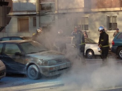 Los primeros en intervenir han sido agentes de la Policía Municipal, que han contenido el incendio con extintores hasta la llegada de los Bomberos. La actuación y el humo generado por las llamas ha hecho que la Policía solicitara precaución para los conductores que circularan por esta zona a primera hora del jueves.