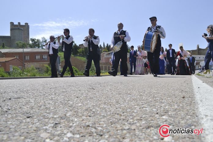 A las 12:20 aproximadamente ha comenzado el caminar de unas ilusionadas reinas y de un risueño galán que han andado al ritmo de las dulzainas del grupo Tierras Llanas desde el epicentro del municipio hasta llegar a la ermita donde todos esperaban, con sus mejores trajes, a los protagonistas de las fiestas.