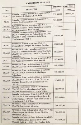 La Sala de Comarcas del Palacio de La Salina ha sido el marco este viernes de la presentación del nuevo Plan de Carreteras de la Diputación de Salamanca. La propuesta será aprobada, habida cuenta de la mayoría absoluta del equipo de Gobierno del Partido Popular, durante el pleno del mes de mayo que tendrá lugar el próximo miércoles. La inversión total asciende a 8 millones de euros, a los que se deben sumar 150.000 euros en obras complementarias.