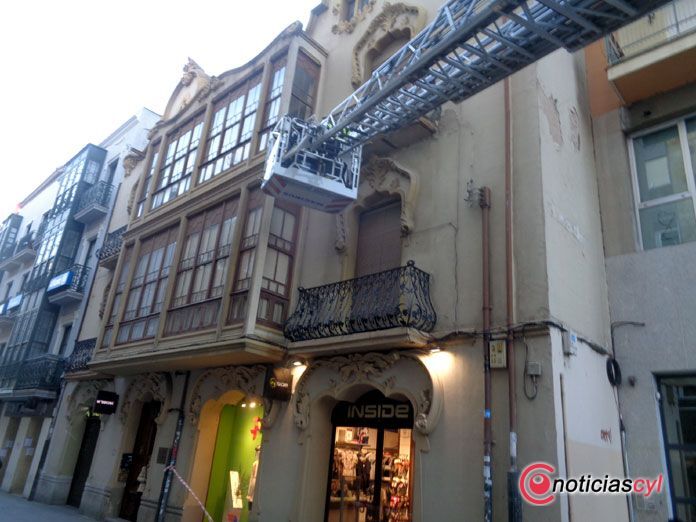Los bomberos de Zamora han actuado esta tarde alrededor de las 20:30 horas en un edificio ubicado a la altura del numero 31 de la calle Santa Clara por desprendimientos de cascotes de varios bacones.
