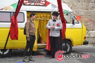 La lluvia no detuvo a Antonio J. Gómez el viernes y este sábado volverá a actuar, 20.30 horas, en el Atrio de Santiago donde despliega su repertorio de trucos fallidos y anuncios de ilusionismo que terminan en algo inesperado.