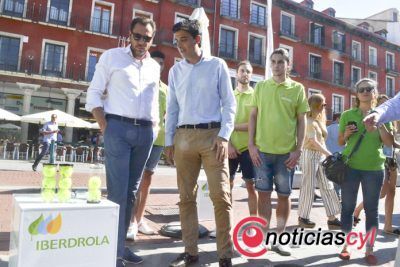 “Lo que queremos escenificar hoy aquí, en Valladolid, con motivo de la llegada del World Padel Tour a la ciudad es nuestra doble apuesta por un lado por el mundo del deporte y por otro por la movilidad sostenible”, ha asegurado Ignacio Antolín, responsable de Relaciones Institucionales de Iberdrola en Castilla y León, que se ha dado una vuelta por las instalaciones de la compañía ubicadas en la Plaza Mayor con el alcalde de la ciudad, Óscar Puente.
