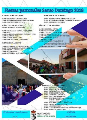 Doñinos de Salamanca celebra sus fiestas de Santo Domingo, conocidas como las fiestas de verano, del 7 al 12 de agosto. Organizadas por el Ayuntamiento, van de la mano los deportes, con las verbenas y también las actividades culturales.