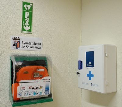 El Ayuntamiento de Salamanca promueve mejorar la calidad de vida de los habitantes de la ciudad, reforzando las actividades que lleva a cabo con nuevas iniciativas para una mayor prevención y efectividad en las actuaciones. Dentro de estos objetivos está actuar en situaciones de emergencias por una parada cardiaca. Para ello, el Ayuntamiento dispone a día de hoy de 39 desfibriladores externos semiautomáticos en distintas dependencias municipales, más uno de reserva, entre los que se encuentran cuatro móviles que posee la Policía Local para dotar a sus vehículos. Una cantidad que se incrementará próximamente, como informó, en el último Consejo Sectorial de Salud, la concejala María José Fresnadillo.