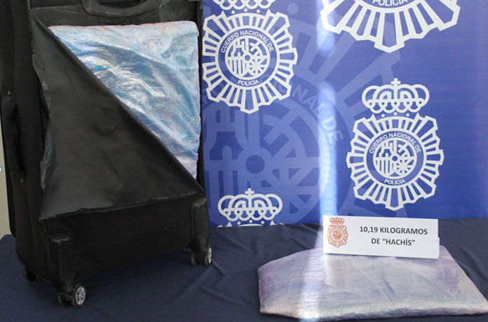 Los hechos se produjeron el pasado día 3 de febrero, cuando el sospechoso, sometido a vigilancia policial, detuvo su vehículo en un área de servicio de la autovía M-50 y, en el registro, los agentes hallaron dos maletas de grandes dimensiones que, en un doble fondo practicado al efecto, ocultaban diez kilogramos de hachís prensado y adaptado a la forma y tamaño de la maleta.