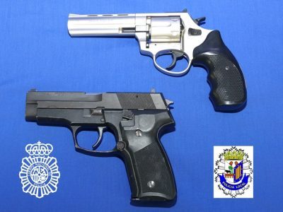 Agentes de La Policía Local de Salamanca detuvieron a dos varones de 33 y 38 años, como presuntos autores de un delito de robo con violencia o intimidación perpetrado en un domicilio del Paseo de Carmelitas. Contaban en su poder en el momento de la detención una pistola, un revólver detonador con cartuchos y distintos efectos que, presuntamente, iba a ser destinados a la sujeción de las víctimas, a evitar la identificación de los autores o a favorecer su huida.