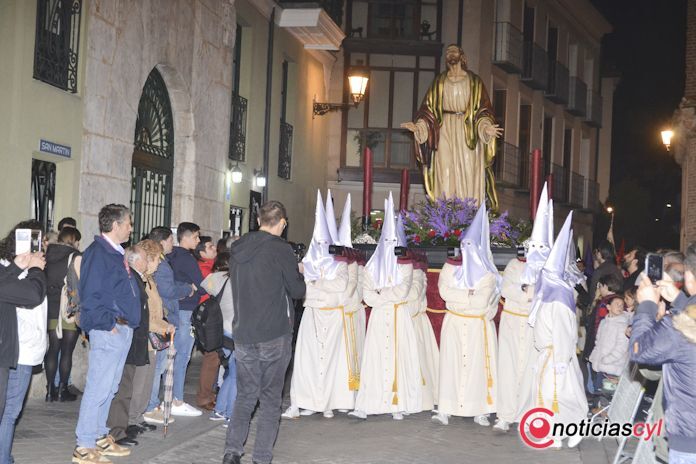 El sonido de las cornetas y los tambores ha amenizado el paso de una imagen característica ya en la Semana de Pasión pucelana. La imagen estaba pensada en un primer momento para el paso de la Sagrada cena y ha vivido un momento indescriptible a su llegada a la Catedral donde el templo le ha recibido a oscuras, únicamente con la luz de los blandones del paso y tenebrarios.