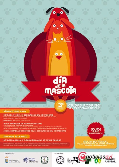 El Ayuntamieto de Ciudad Rodrigo presenta el programa de la Feria de Mayo 2019 que, en esta ocasión, coincide también con la Feria de la Mascota. Ferias que se celebrarán, como es habitual, en la Nave Municipal ubicada en el Polígono.