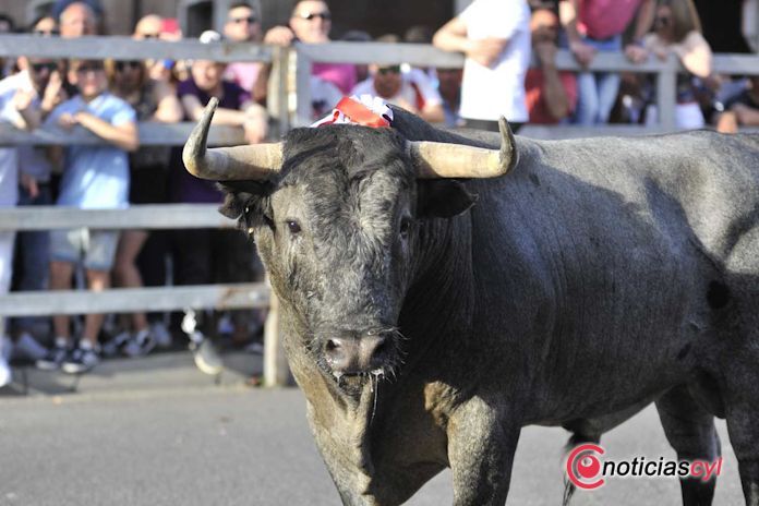 Tras los consabidos cohetes anunciadores se soltó al segundo toro: “Marquesote”, negro, cuatreño y un peso de 540 kilos de la ganadería de López Gibaja. Dio juego de salida, pero pasó una eternidad hasta que pudo llegar al coso. Hasta tres o cuatro veces tuvieron que echarle los bueyes. Luego en la plaza resultó acometedor frente a los jóvenes que intentaban el corte.