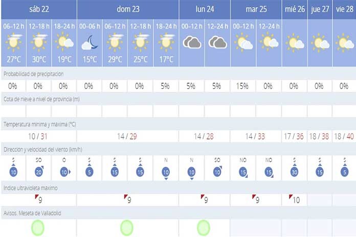 El verano ya está aquí y Valladolid lo va a vivir de primera mano con temperaturas que van a ir subiendo a lo largo de la semana y que llegarán incluso a los 40º al final de la semana próxima según las predicciones de la Agencia Estatal de Meteorología.