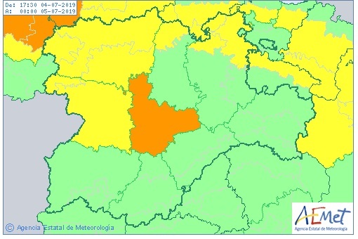 La Agencia Estatal de Meteorología ha actualizado sus alertas y a las amarillas en León, Zamora y al norte de Palencia y Burgos hay que añadir la alerta naranja por tormentas, que implica un riesgo importante, en Valladolid.
