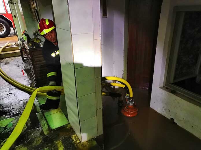 Una vivienda habitada en Pobladura del Valle acumulaba tras la fuerte tormenta hasta 40 centímetros de agua en su interior. Los Bomberos de Benavente han tenido que acudir rápidamente para drenar el agua del domicilio.