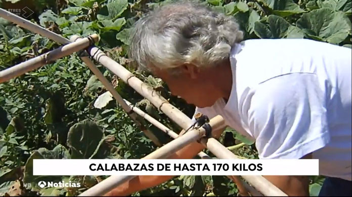 Manuel Ramos y su huerta en Fermoselle han sido protagonistas en el informativo de Antena 3 este mediodía, y es que al zamorano le han salido cuatro calabazas que rondan los 170 kilos, sumando juntas más de media tonelada.