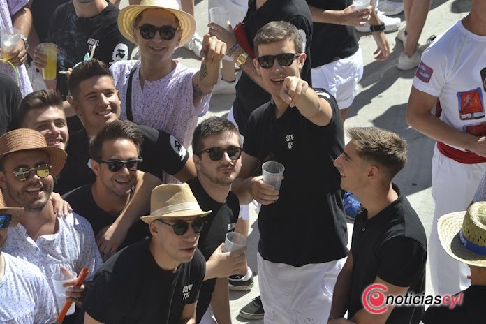 A eso de las 12.00 de esta preciosa mañana de miércoles en la localidad pucelana la gente se comenzaba a agolpar en una Plaza de España que se ha abarrotado. Las peñas han puesto el colorido perfecto a un pregón que ha estado a la altura, que ha gustado y sorprendido por partes iguales a todos los que de él han disfrutado.
