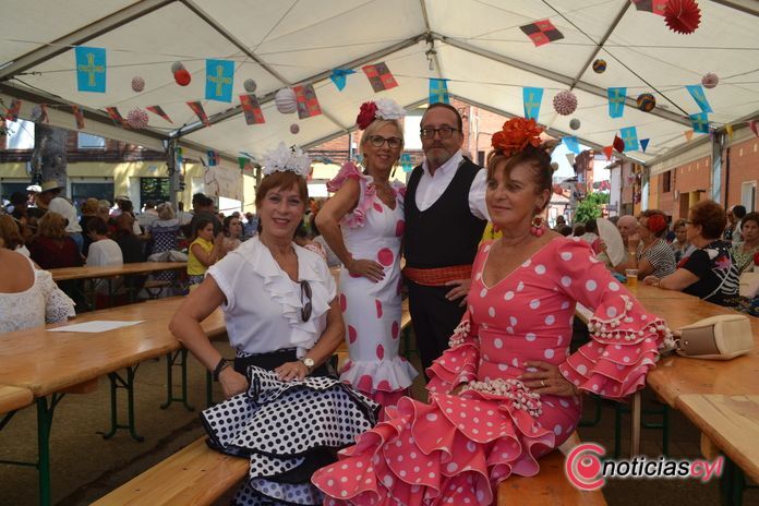 Cerca del mediodía llegaban a Sahagún unas 400 personas vestidas de la temática con sus flores y sus abanicos para disfrutar de un espléndido día de verano. En la plaza de San Benito tuvo lugar este sábado una concentración para que todos los visitantes y vecinos se situaran en la Fiesta y cogieran el ritmo andaluz. Soraya Bernal, concejala de Fiestas de Sahagún, nos contaba minutos antes de comenzar la Fiesta que "no para de llegar gente, así que la Fiesta Rociera ya tiene que ser una tradición en Sahagún".