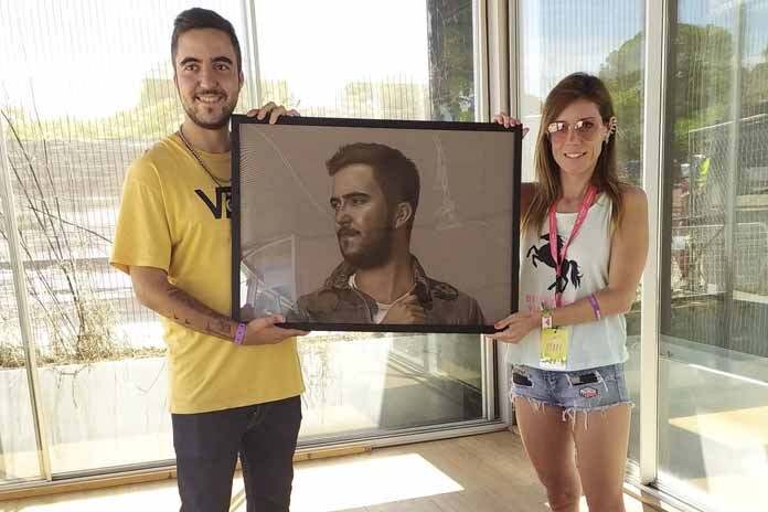 R. Coincidimos en el Conexión Valladolid Festival, donde yo tenía una exposición de retratos de cantantes, y me comentó que él era muy difícil de dibujar, así que tuve que aceptar el reto. Pero él no sabía nada… me gusta sorprender en mis redes.