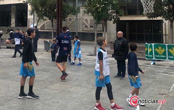 La cantera del C.B. Zamora aguantaba esta mañana la lluvia que está cayendo en la capital para celebrar su 'Día Azul'. A lo largo de la mañana jugadores y jugadoras del proyecto CB Zamora participaban en las distintas competiciones organizadas por el Club, que incluía la visita del Innova Chef.