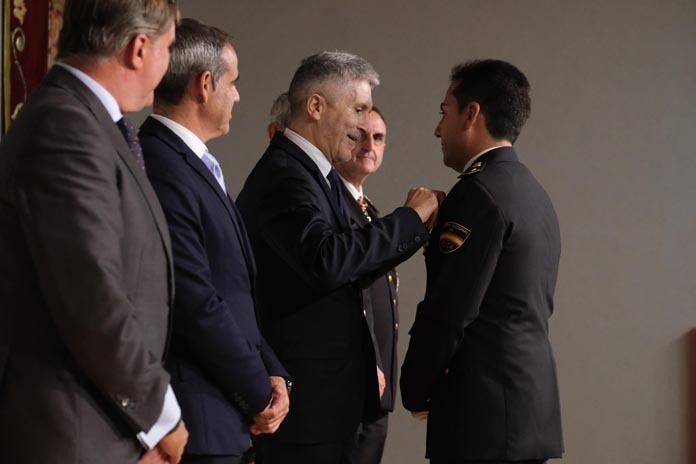 El agente de Policía Nacional zamorano Andrés Bragado recibió durante la jornada de ayer de mano del ministro Grande Marlaska la Cruz al Mérito de la Policía Nacional con distintivo blanco por su trayectoria profesional.