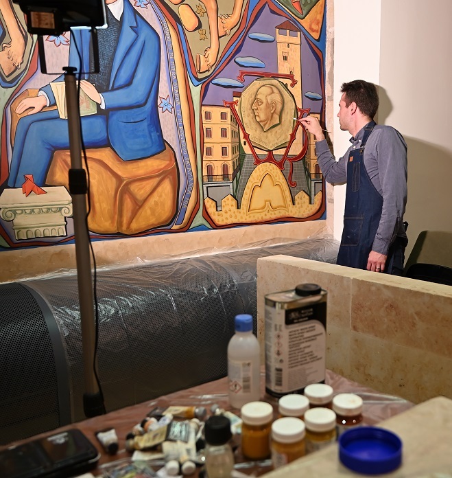 El Ayuntamiento de Salamanca ha anunciado que este miércoles han comenzado ya los trabajos para retirar la imagen de Francisco Franco del mural pintado en el Salón de Plenos del Ayuntamiento de Salamanca, en cumplimiento de una sentencia judicial del Tribunal Supremo, tras recibir el visto bueno de la familia del autor de la obra, Ramón Melero, y el apoyo de los demás grupos políticos de la Corporación Municipal.