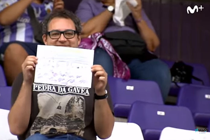 Este pucelano apareció el lunes en el mítico programa ‘El Día Después’, tras ser cazado en la grada del santuario blanquivioleta con cuaderno y boli en mano realizando un dibujo de lo que divisaba desde su posición. Javier nos confiesa que “se ha reído mucho con el tema con su familia y amigos” y que “es un bonito recuerdo verse en la televisión”.