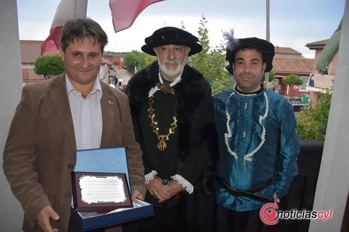 El alcalde, Alberto Sanz, se ha dirigido a los participantes desde el balcón del Ayuntamiento para agradecer la participación pese al mal tiempo y destacar los méritos del que ha sido nombrado como Posadero Real, David Muriel Alonso, técnico de Desarrollo Local de Medina del Campo y coordinador de la Semana Renacentista en la villa. "Para todo este éxito de las recreaciones históricas tiene que haber un origen y para nosotros en gran parte es gracias a Medina y a todo el trabajo que hemos compartido con ellos y del que hemos aprendido", ha apuntado Sanz.