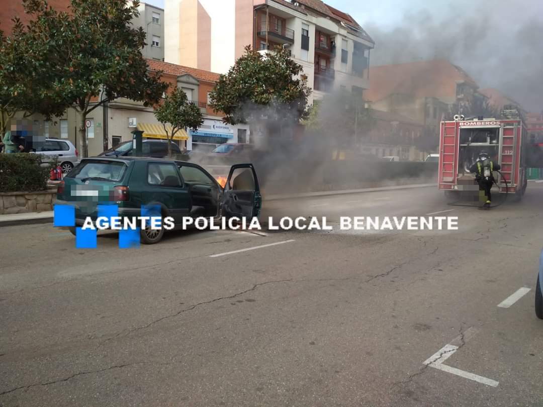 Un turismo ha comenzado a arden en plena avenida del Ferial de Benavente esta mañana. Los Bomberos de Benavente acudían rápidamente al lugar para sofocar las llamas y evitar que el vehículo terminara por explotar, mientras la Policía Municipal regulaba el tráfico y evitaba que el resto de vehículos se acercaran al lugar.