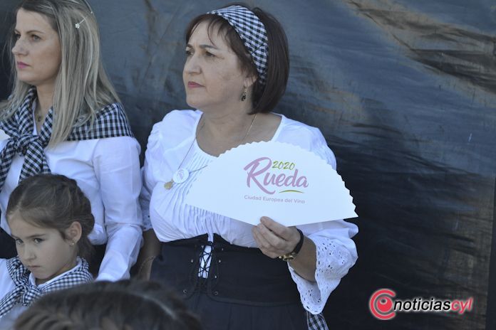 El momento más importante en Rueda se vive con la Fiesta de la Vendimia que está declarada Fiesta de Interés Turístico regional y que cada año congrega a unas 5.000 personas en el pueblo. Uno de los principales atractivos de la fiesta es la Feria del Vino, situada en la Plaza Mayor, que se celebra tras el pregón y la pisada de uva. En la feria participan diferentes bodegas de la D.O. Rueda ofreciendo sus vinos y todo el que hasta aquí viene disfruta de los mejores caldos antes de la paella popular”, nos cuenta la alcaldesa.
