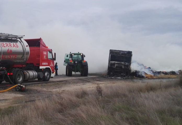 El camión transportaba paja y las llamas se han propagado con rapidez, si bien los agentes de la Guardia Civil han procedido de inmediato a cortar la carretera y desviar el tráfico mientras que los bomberos de Zamora y de Aliste realizaban las labores de extinción.