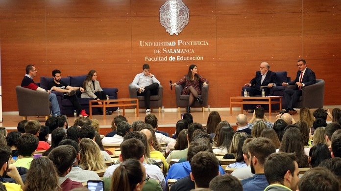Tras la inauguración, el exseleccionador ha contestado una batería de preguntas -sobre los valores que aporta el deporte y su papel en la educación- realizadas por estudiantes de bachillerato de varios institutos de Salamanca, alumnos universitarios de los grados de Infantil, Primaria y Ciencias de la Actividad Física y del Deporte (CAFyD) y miembros de la Fundación AVIVA (Asociación prestadora de servicios de ocio y físico deportivos a personas con discapacidad y su entorno).