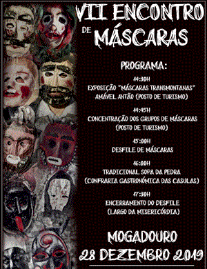 Todo este nacimiento anual en el Solsticio de Invierno de ritos ancestrales tiene como culminación con el VII Encuentro de Máscaras, que tendrá lugar con un desfile por las calles de Mogadouro el 28 de diciembre de 2019, desde las 15.00 horas. En su mitad se degustará la tradicional 'Sopa da Pedra' ofrecida por la Confraria Gastronómica das Casulas.