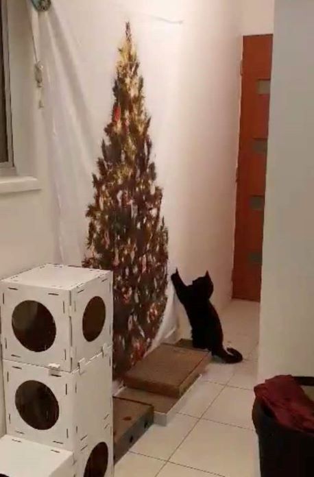 Este gato no entiende cómo este árbol de Navidad sobrevive a sus "caricias"