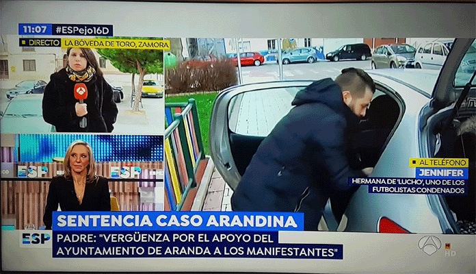 El programa Espejo Público de Antena 3 en su programa de esta mañana se ha centrado principalmente en este caso, desplazando a una de sus reporteras a La Bóveda de Toro, donde anoche tuvo lugar una concentración en apoyo a los jugadores y en la que estuvieron presentes dos de ellos, pues Raúl Calvo es originario de esta localidad zamorana.
