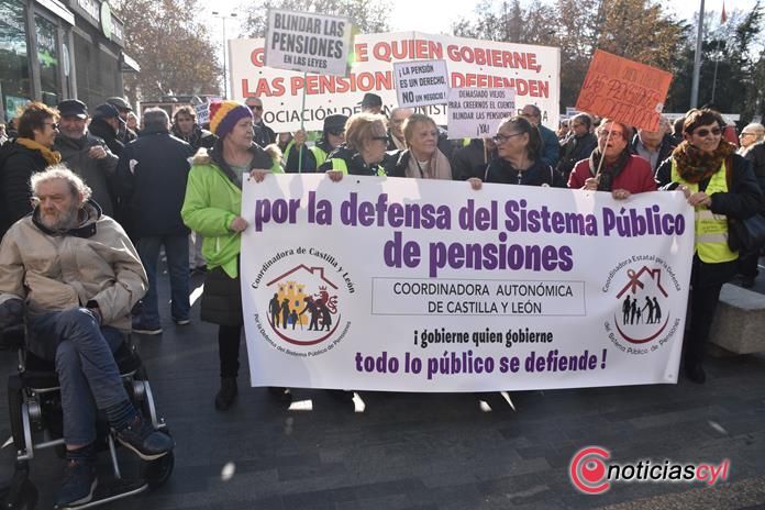 Ni el paso del tiempo, ni la proximidad de las fiestas navideñas, ni la cascada de promesas políticas han doblegado a los pensionistas, que mantienen en pie su reivindicación de defensa del sistema público que garantice y mejore unas "pensiones dignas". La Coordinadora de Castilla y León ha convocado este lunes una manifestación en la que han participado cientos de personas que han caminado desde la plaza Zorrilla hasta la sede de las Cortes autonómicas para reclamar su implicación.